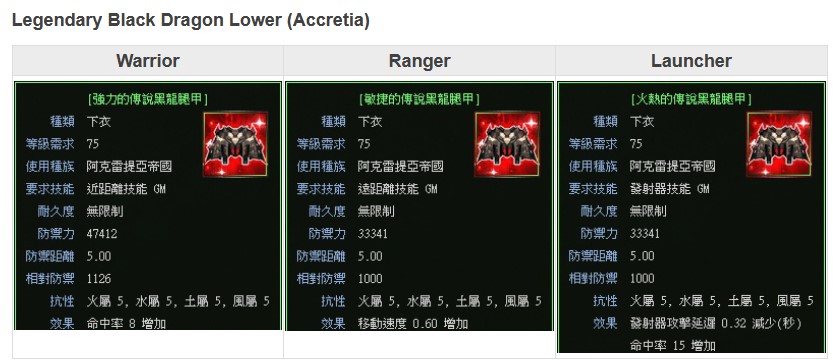 Leg armor crafted using the extremely rare blood of a Black Dragon King and modeled after the Black Dragon's appearance. It exists only in legends; only a very few people in this universe have ever truly seen it. Because its properties differ from existing materials, it cannot be enhanced with Featherstone.