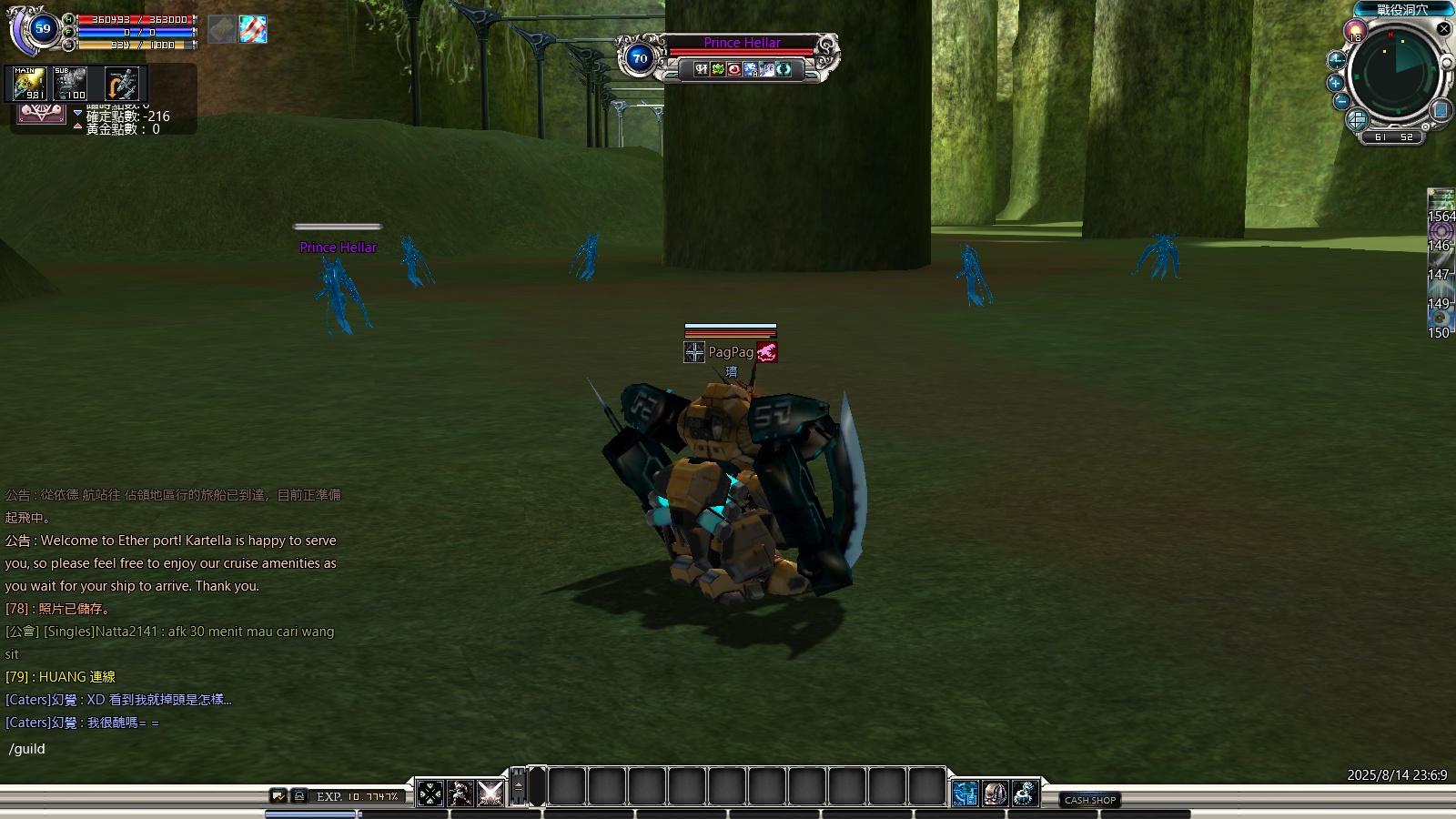 Prince Hellar also spawn in Battle Dungeon 48-51 (NEW Unknown). Minimum level 55 ~ Maximum level 70 to enter this battle dungeon (screenshot: RF Online Taiwan 2022 – 2025)