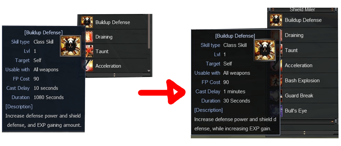 Skill Buildup Defense (Bellato Shield Miller) cast delay changed to 1 minutes, and cooldown reduced to 30 second in RF Online Update Latest : Dragonborn Patch.