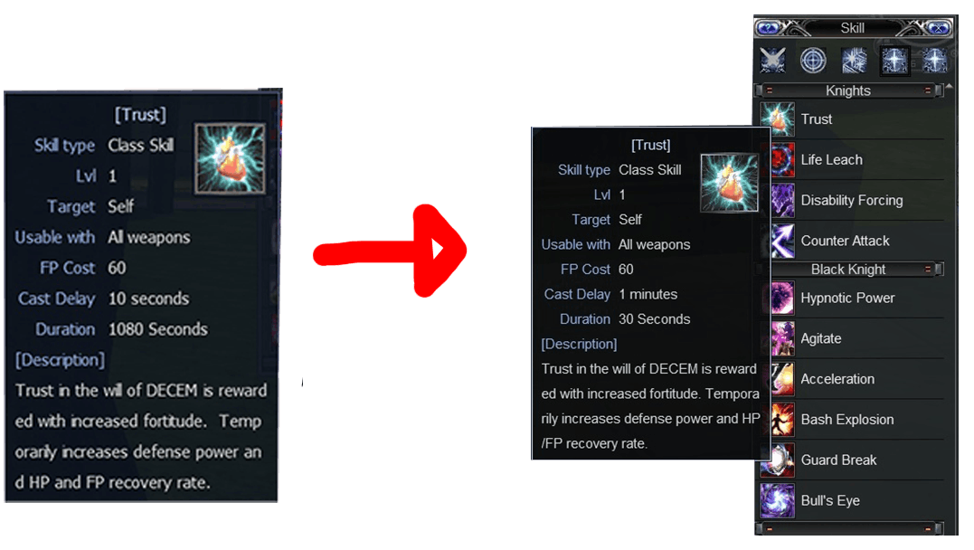 Skill Trust (Cora Knight) cast delay changed to 1 minutes, and cooldown reduced to 30 second in RF Online Update Latest : Dragonborn Patch.